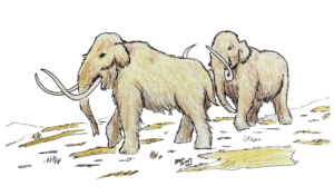 Large Mammoth roamed the frozen tundra. Painting by Bryan Demory, Staunton, VA
