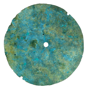 Copper Jesuit teaching plate associated with teaching the Woodland Culture Christianity on the frontier. Found by Kim Plotner along Buffalo Branch in Augusta Co., VA